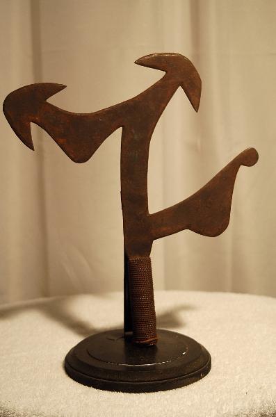 The "throwing knife" developed from simple, functional tools into one of the most beautiful weapons. The great migrations of African people over many centuries and in many directions have all contributed to these design changes. The oldest type is found in the Sahel, in North Cameroon. These weapons are thrown sidearm, and rotate around their center of gravity. They usually have two piercing spikes. Some of the knives are still used by African men as both weapons and ornamentation. These "throwing Knife" forms were recognized and used as currency.