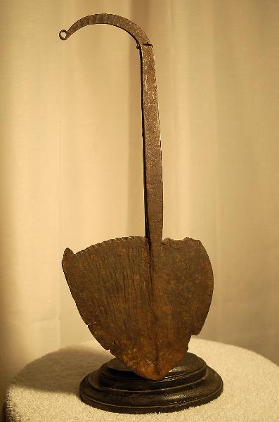 This is an especially nice piece. Classified as blade currency or sometimes listed among the Throwing Knives, these specimens have also been referred to as a "stingray" hoe, presumably because of its shape.