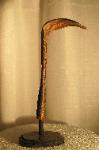 | Though no longer used, these sculpted shaping of functional forms represent the blending of art and commerce in a simple and abstracted shape. Throughout Africa metal currency is a tangible manifestation of economic power, valued materially and held great symbolic and ritual meaning. Iron forged into different patterns was used by the different tribes as exchanged and accepted currency. Beaten into shapes that were common to their life experience, the hoe was a prominent form. The worked hoe form could be further forged into something else such as an axe or knife. The blacksmith who forged the iron was both held in technical awe and feared as he made iron with fire after converting the ore into iron and then shaping it into functional forms. He was thus someone who manipulated the forces of nature through ritual, skill and secret knowledge. |