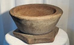 Both the end and the tip of the pestle are discolored from use grinding different materials in a mortar. This pestle was used by women as pounder in food preparation. The center is decolored from extensive use . This pestle has a great patina from extensive use.