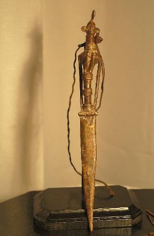 Throughout West Africa, bronze casting has been the prerogative of blacksmiths, who wielded power in their communities. Distinct from those commissioned for royal and court use, village bronzes are usually smaller in scale and made for use by individuals as protective, curative, or commemorative devices. They could also present mythological or every day life subjects. These knives with man and woman images could be used during some community ceremonies.