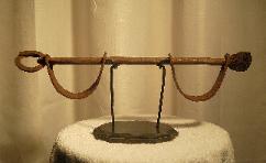 These shackles served to bind the captive either by the legs at the ankles or the by the hands at the wrists. The slave could not walk with these, so they were installed in the ship.