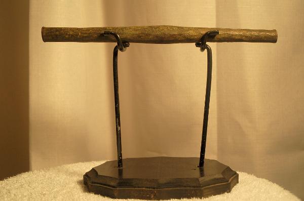 Cast in earth and molded from the true African copper indigenous to the Katanga area, this form of currency was highly prized since these could be easily melted down or shaped to form the bracelet and ring currency they so valued. Also used as a beater or ringer bar for the old iron bell gongs that later became currency too. A bar was struck against the gong to produce the ring or clang to create a musical rhythm for ceremonial dances or communication.