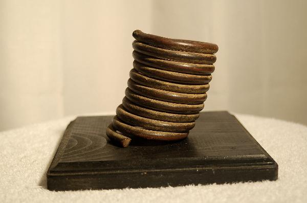 Very impressive heavy copper coil rod bracele bracelet known as Mitako, also called "teke", used widely by various peoples throughout the Congo to store (cache) wealth and as currency. At one time the mitako currency was the only acceptable form of currency in widespread use throughout Central Africa, according to Opitz.
