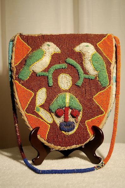 Among the Yoruba, beadwork is the province of the Ifa diviner, something akin to a priest. Worn by Babalawo (diviners), beaded bags such as this are known as Apo Ileke Ifa and would hold the diviner's chains or cowrie shells that would be tossed onto the ground and interpreted by the diviner.